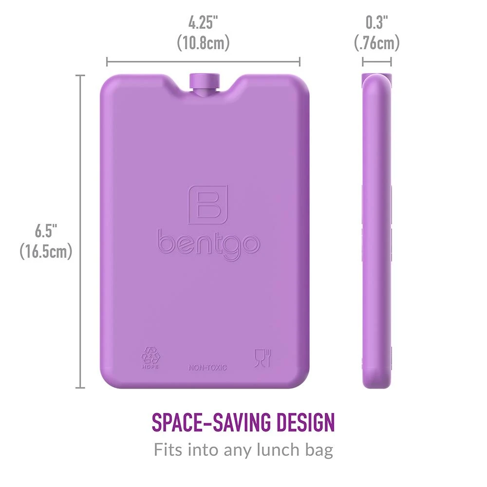Keep your food fresh longer with Bentgo’s colorful array of slim Lunch Chillers. These hard, extra-thin ice packs freeze quickly and take up virtually none of the precious space you need in your lunch bag or cooler for food and beverages. Lunch Chillers reusable ice packs for lunch boxes are also easy to clean.