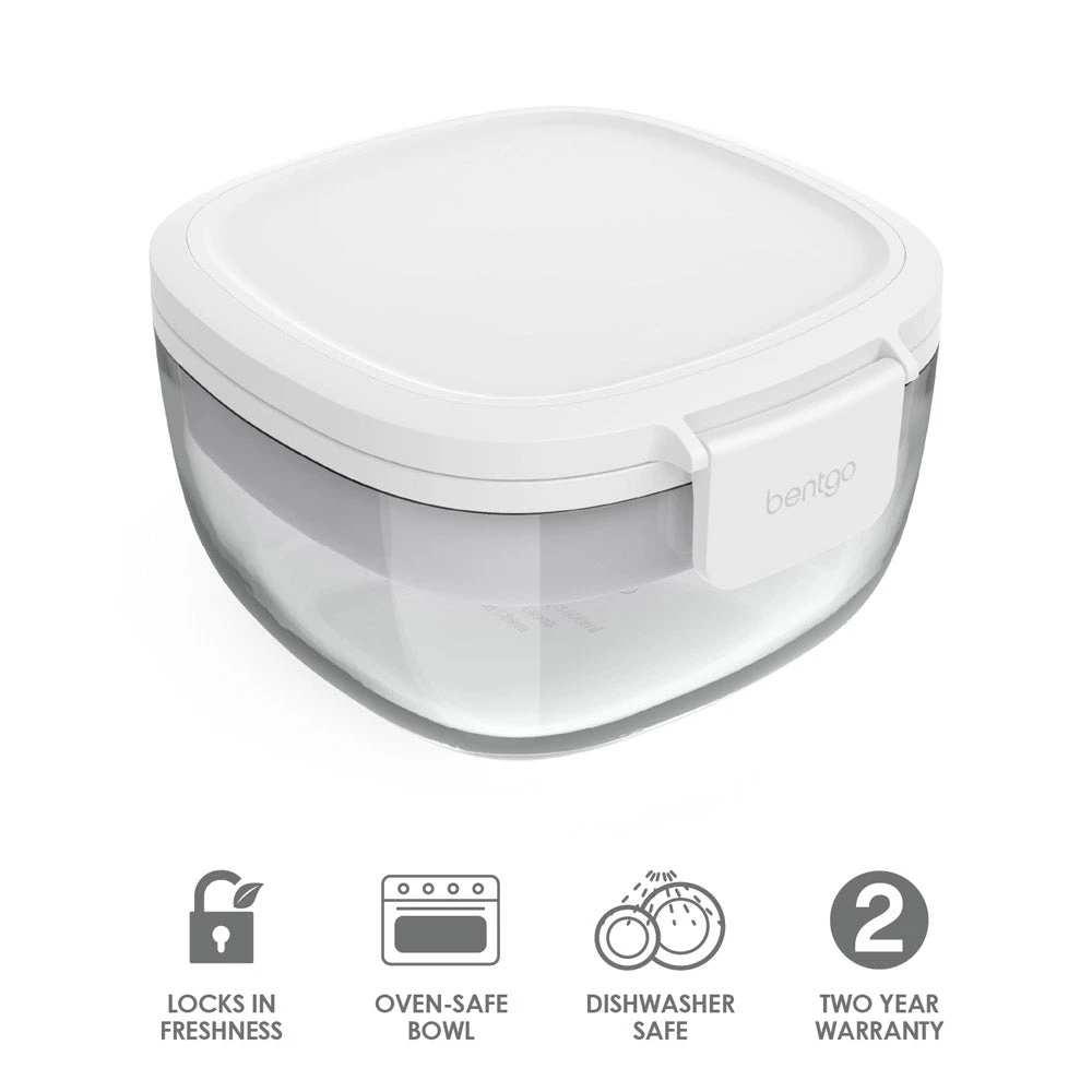 - ENJOY COLD OR HOT MEALS: Bentgo Glass is for more than just salads, it’s great for hot meals too. Unlike plastic bowls that retain food odors and are not always microwave safe, glass is non-porous, microwave safe, and oven safe