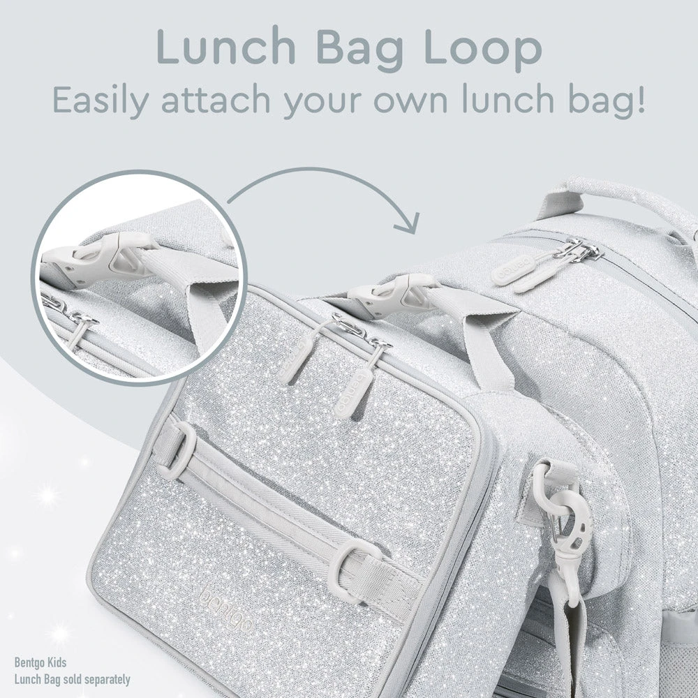 - HOLDS YOUR LUNCH BAG: We added a sturdy and convenient loop to the top of the backpack for attaching your Bentgo Kids Prints Lunch Bag, so you can send your boys and girls to school with all of their essentials (and a healthy lunch!)