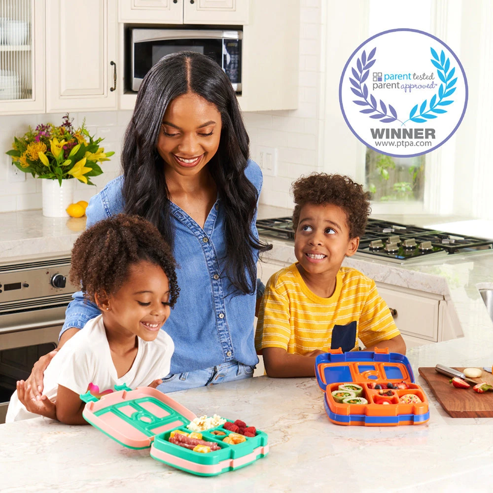 Bentgo Kids lunch box is leak-proof and features 5 compartments for fruit, veggies, dip, an entrée, and dessert. With so many perfectly portioned compartments, this Bentgo box for kids organically inspires parents to pack a more wholesome, balanced lunch for growing kids who are always on the go. This bento lunch box for kids features drop-proof, rubber-coated edges and a sturdy design that is ideal for active kids on the go. It keeps meals and snacks fresh and mess-free during transport and includes 2 kid-friendly latches that are easy for small hands to open and close.