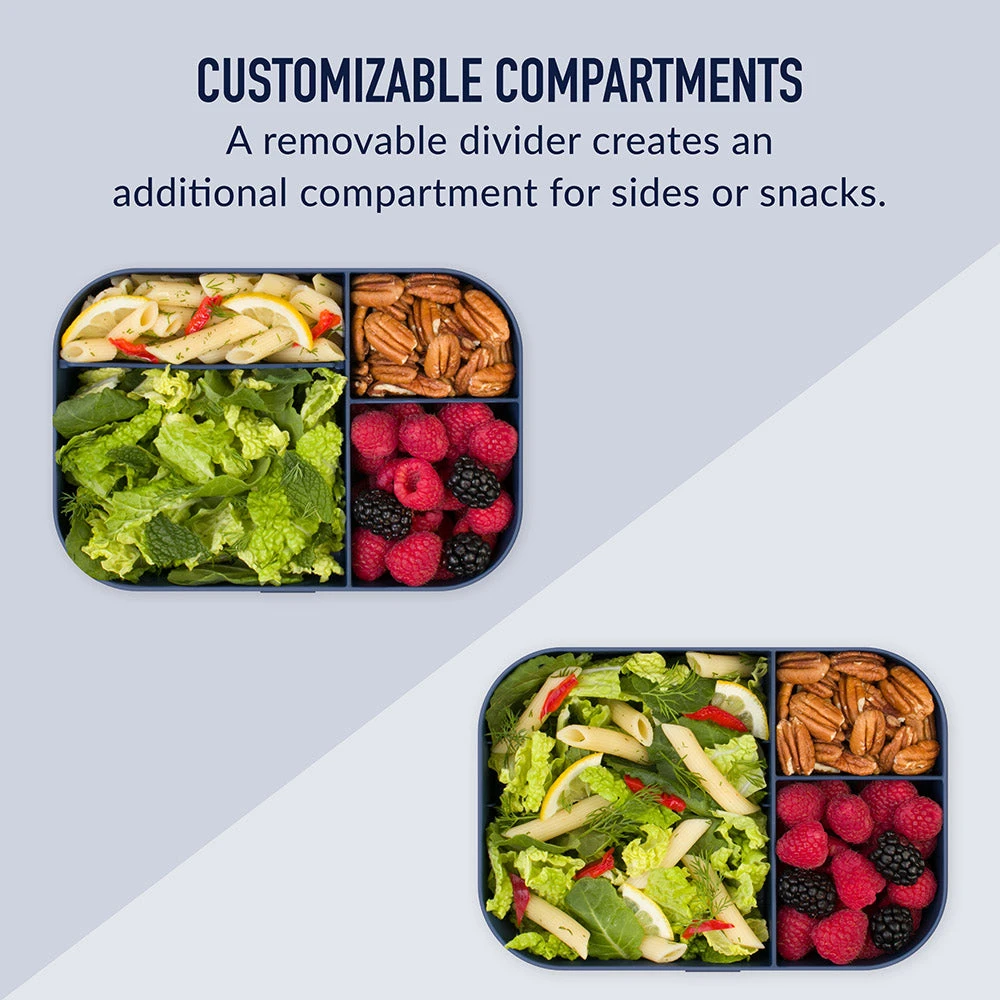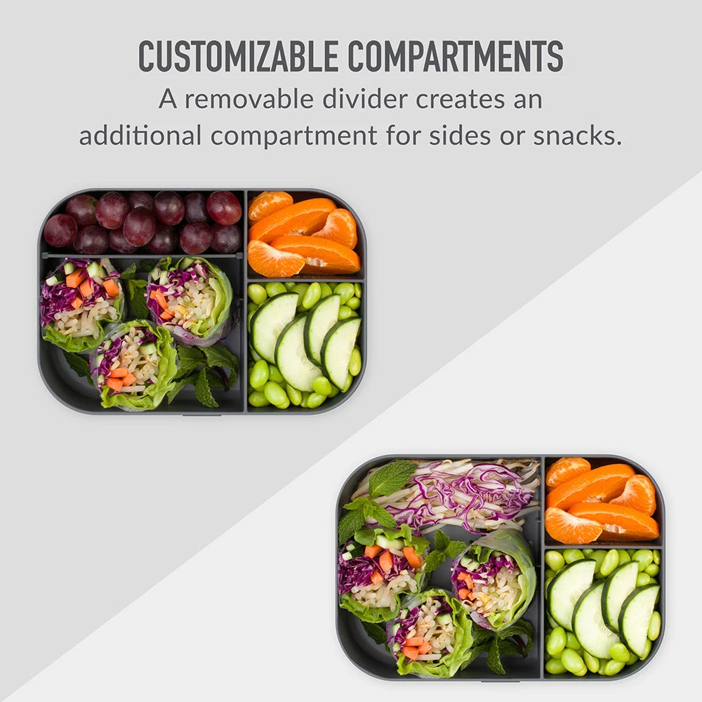 - CUSTOMIZABLE COMPARTMENTS: The convenient optional divider allows you to create portion-controlled meals and tailor your food storage container. Customize it to be a 3 or 4 compartment bento lunch box.Â