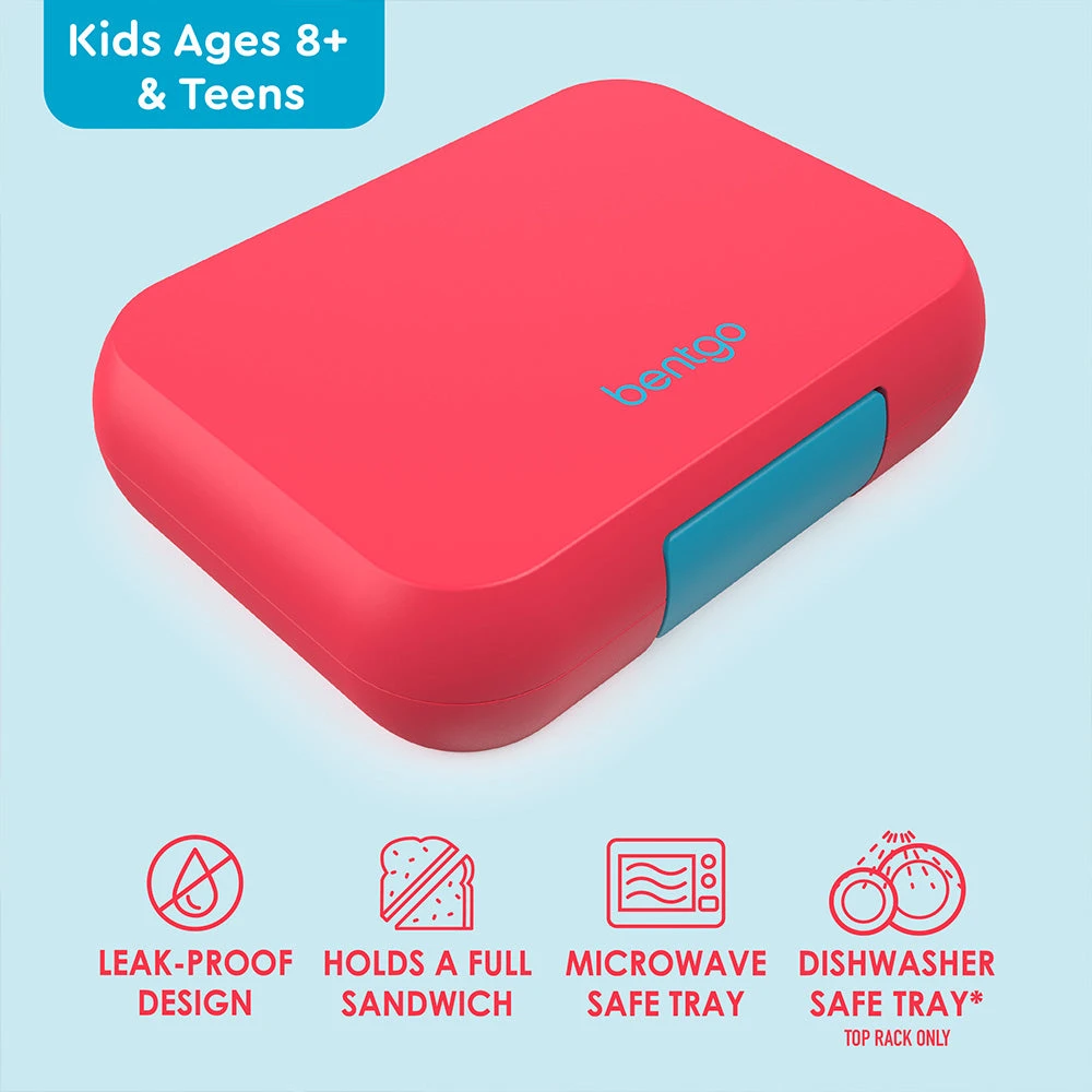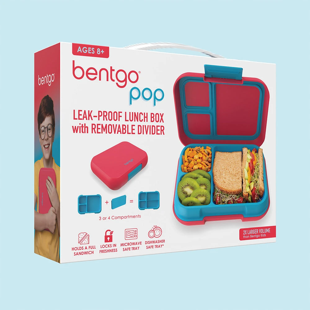 - IDEAL FOR BIG KIDS & TEENS: Bring a bold pop of color to school with this stylish yet durable lunch box made for ages 8+. Bentgo Pop is lightweight and uniquely designed with bento-style compartments to keep a variety of your favorite foods separate. Pack it in a backpack or tote for the cafeteria, activities, sports practice, the beach, and more!