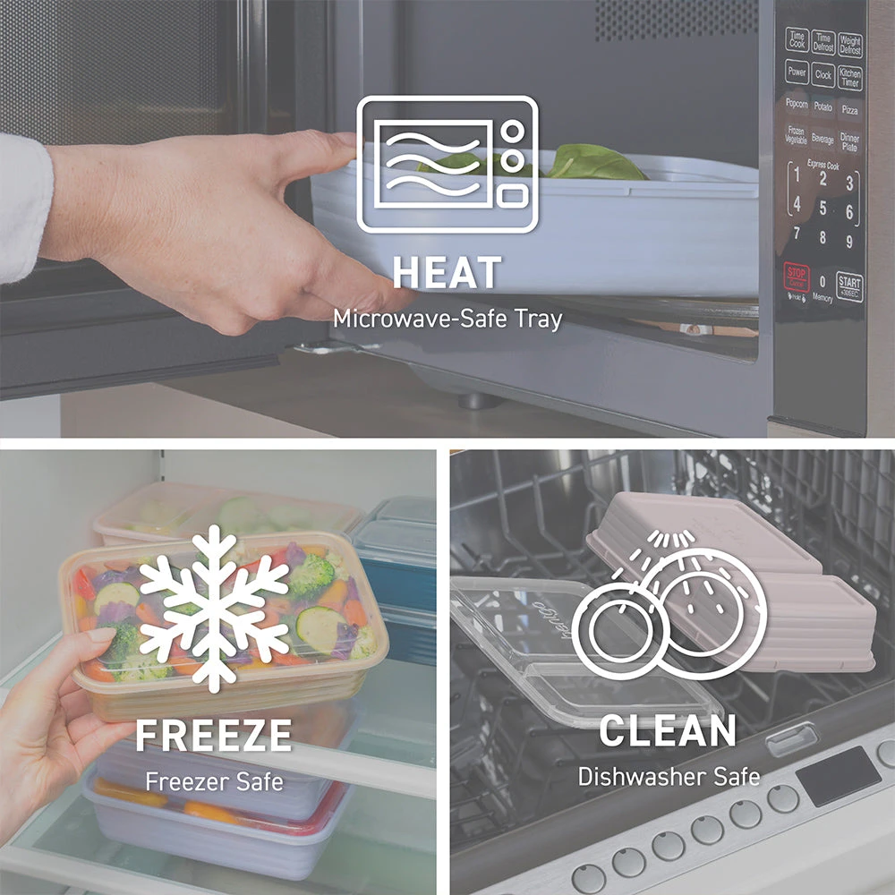 - EASY TO HEAT & CLEAN: Safely heat up your food straight from the freezer or refrigerator for warm, delicious meals and leftovers.. Each BPA-free meal prep container is both microwave and top-shelf dishwasher safe. Note: before microwaving, open the lid corner to allow steam to vent. For best results, hand wash to extend the life of the product.