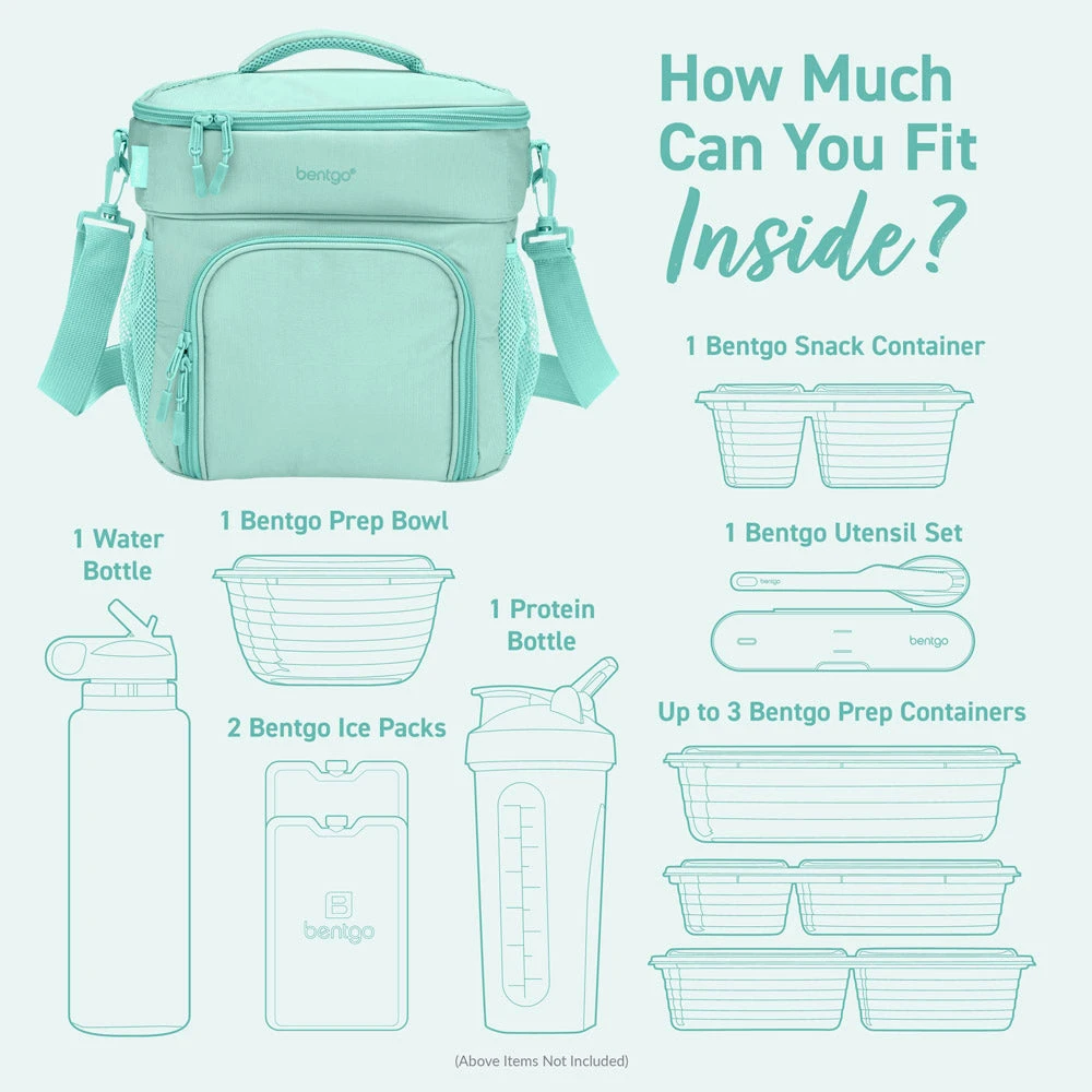 - EXTRA LARGE CAPACITY: Pack up to 4 full meals, snacks, and 2 drinks with this large, multi-compartment bag that’s an ideal meal prep lunch box. Compatible with all the Bentgo Prep containers, easily carry everything you need for healthy meals on the go.
