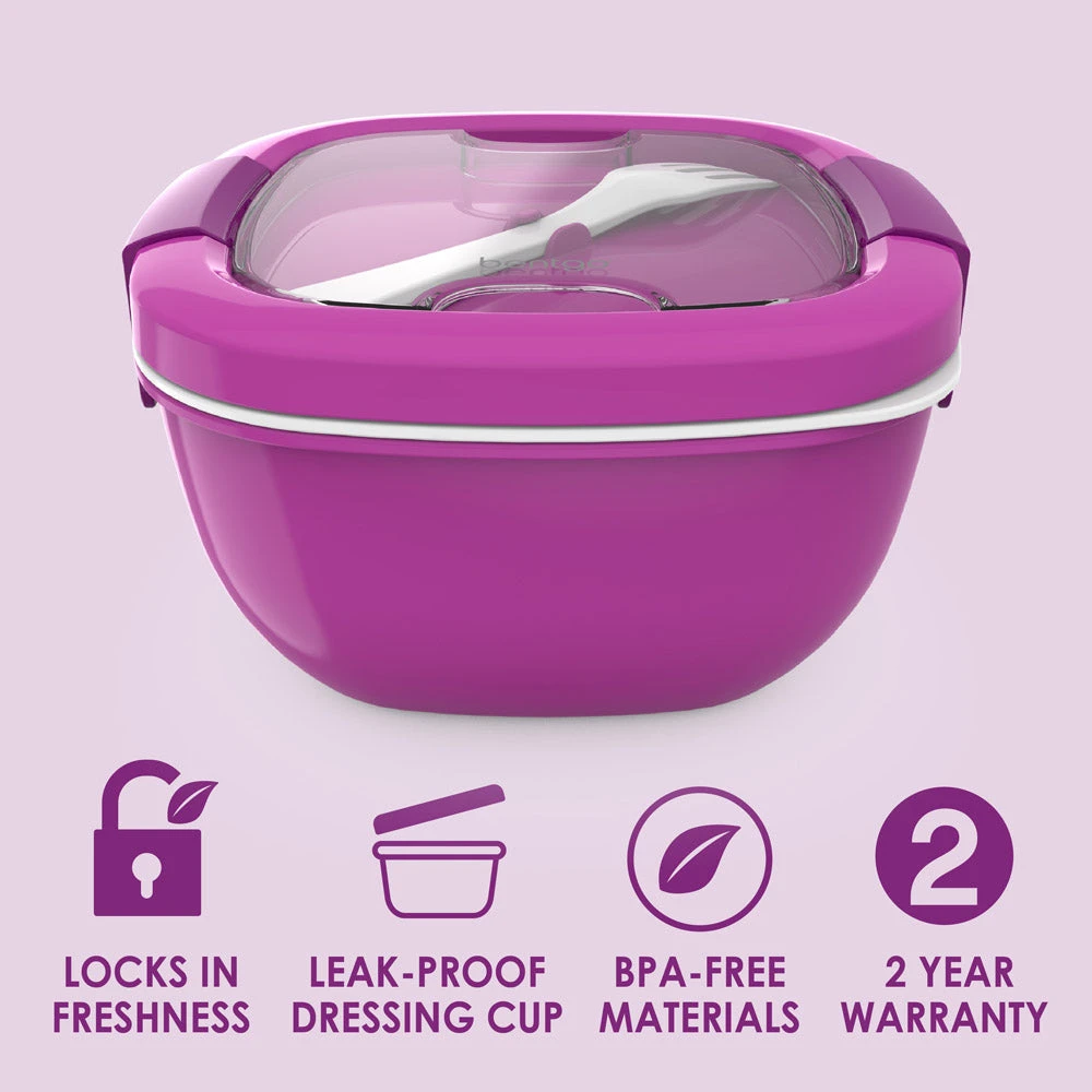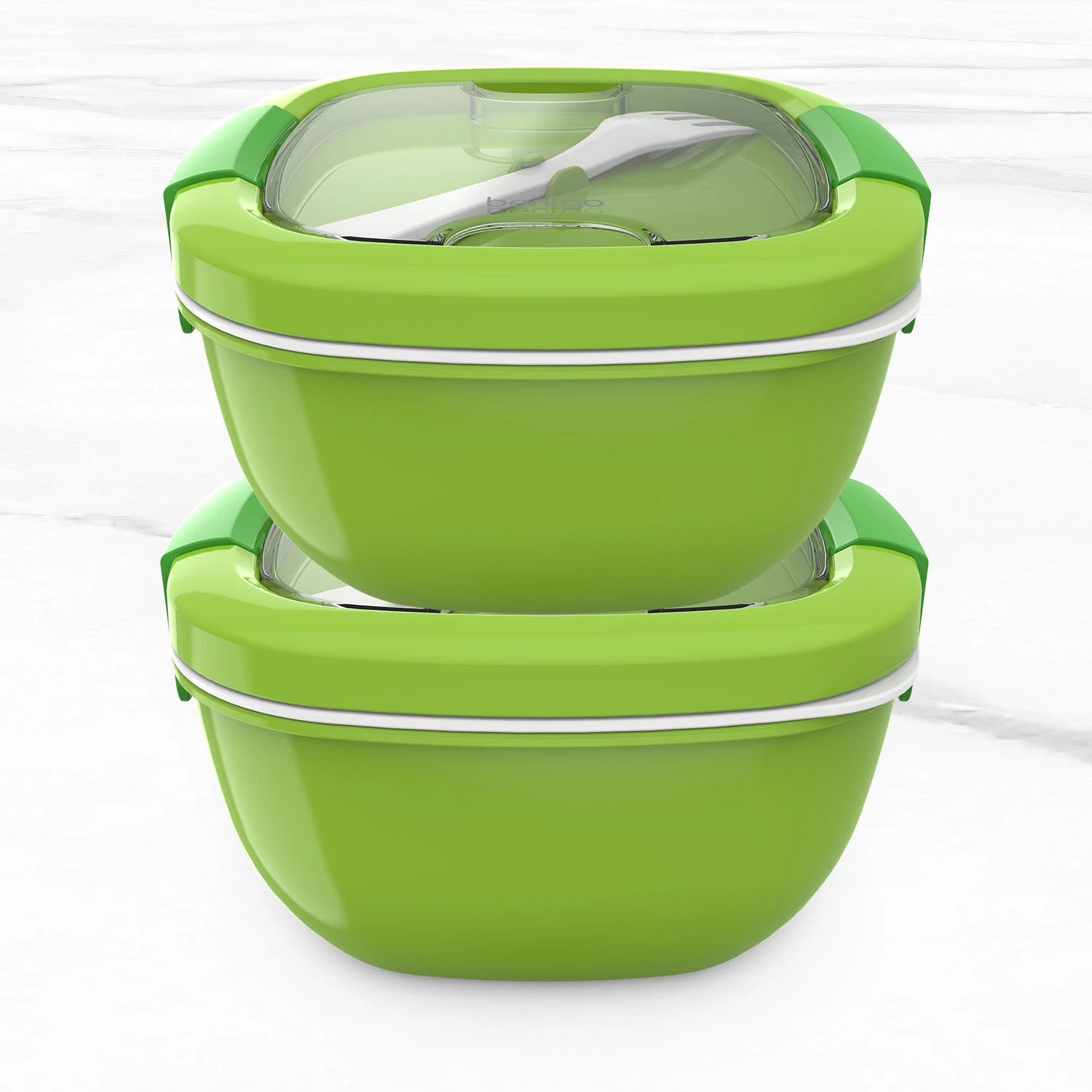 - Stacked for Freshness: All the components of Bentgo Salad stack conveniently inside the large salad bowl for easy portability. With a compartment tray to keep salad toppings separate, a leak-proof sauce container for salad dressing, a reusable fork for dining, and an airtight lid designed with a sealing ring and locking clips for fresh and secure travel, Bentgo Salad provides everything you want in an on-the-go salad container.