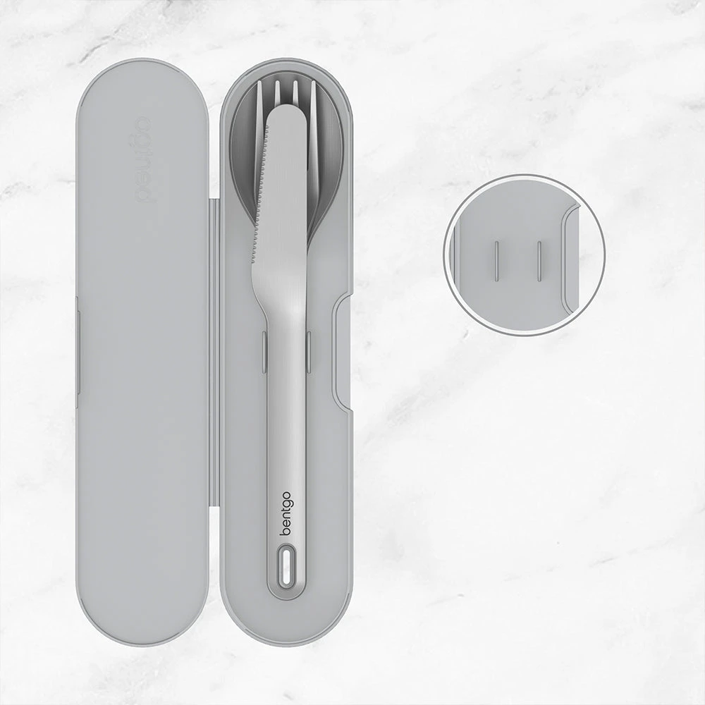 Bentgo® Stainless Travel Utensil Set makes eating any meal easy, safe, and convenient. The minimalist-designed set comes with an adult-sized fork, spoon, knife, and carrying case. Reusable and dishwasher-safe, these high-quality utensils are made with premium-grade stainless steel and are BPA-free. The sleek and colorful case perfectly nests and prevents the cutlery from rattling while in transit and ensures your bag will stay clean after use. Ditch flimsy and unsustainable single-use plastics for an eco-friendly alternative when eating at the office, on vacation, outdoors, or wherever the pursuit of good food takes you.