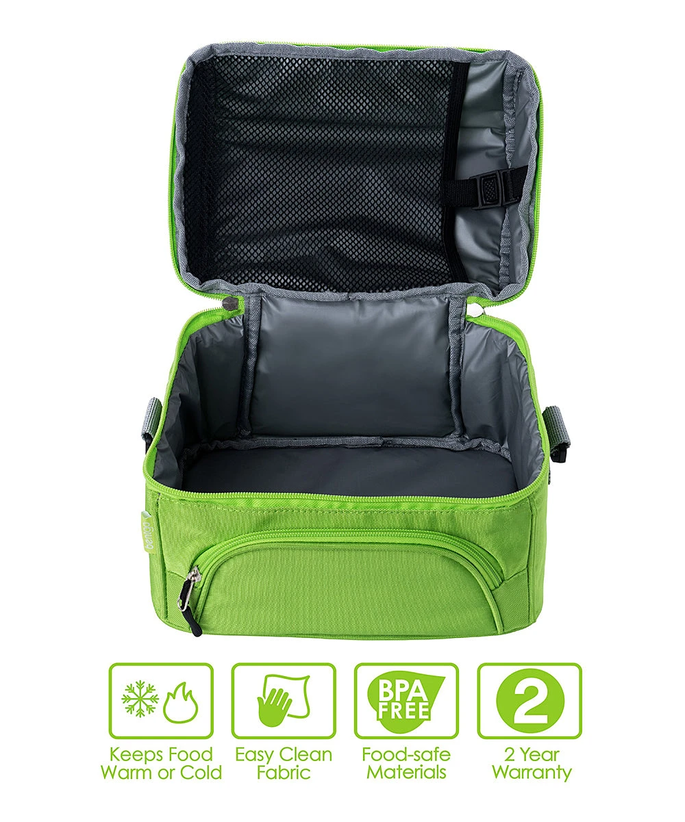 This lunch bag boasts convenient storage for lunches or snacks on the go with its spacious main compartment and front pocket for utensils or napkins.