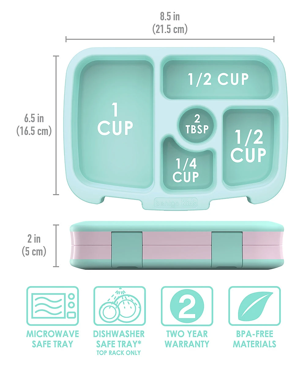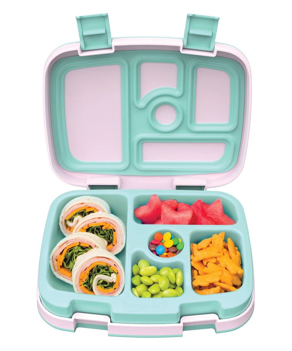Playfully pack lunches with this box featuring a colorful design and five portioned compartments inside.